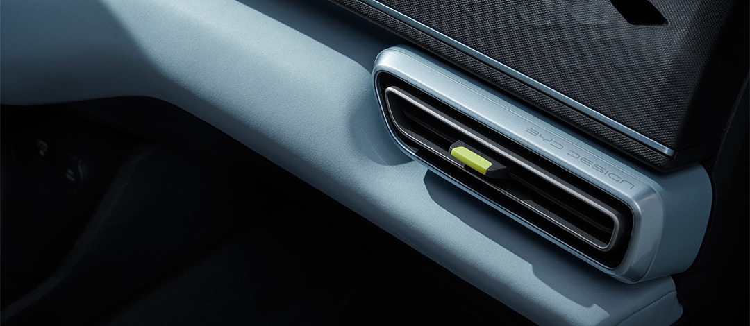 The C-pillar of the BYD DOLPHIN MINI features the “Ice Crystal Frost” design element. Its brightly colored details arranged in a dot matrix provide people with a sense of infinite imagination.